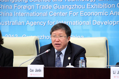 2012年11月10-11日,“加强南南科技合作应对气候变化国际研讨会暨加强南南合作促进绿色发展论坛”在广州召开。作为中国国际绿色创新技术产品展活动之一,会议由科技部、商务部、联合国开发计划署(UNDP)、环境规划署(UNEP)、教科文组织(UNESCO)、工业发展组织(UNIDO)共同主办,中国科技交流中心、广东省对外科技交流中心、中国对外贸易广州展览总公司、中国国际经济技术交流中心承办,澳大利亚国际发展署协办。科技部曹健林副部长、商务部李金早副部长、联合国驻华总协调员罗黛琳女士出席会议并致辞。联合国环境规划署驻华代表张世钢、教科文组织自然科学部门执行主任韩群力、工业发展组织驻华代表处首席代表柯文斯、科技部交流中心孙洪主任、商务部援外司余应福副司长、国际司尧文良商务参赞也出席了会议。会议由科技部国际合作司陈霖豪副司长主持。来自20多个发展中国家和国际组织的200余名中外代表出席了会议。