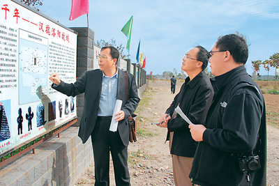 记者在汉魏洛阳故城采访。(来源:人民日报海外版 魏勤英 摄)