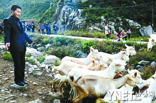 资料图片:2011年10月28日,蒋卫锁在陕西蓝田奶山羊基地。(来源:北青网)