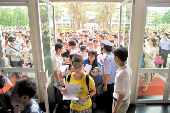 今年国考中,广东省共提供1048个职位,有超过10万人赶考。记者看到,最热门的是佛山海事局,招考人数1人,有3179人报考。广州出入境边防检查总站作为热门岗位之一,此次国考共招收边检站科员210人,报名人数约6000人,边检站的工作人员告诉记者,今年已经下降了很多,去年16000多人争200多个职位。