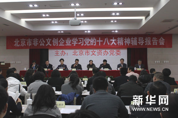 新华网北京11月28日电 (记者 陈元)27日,北京市国有文化资产监督管理办公室(简称文资办)召开非公有制文化创意企业学习宣传党的十八大精神辅导报告会。来自北京市的百余家非公文创企业代表参加了报告会。