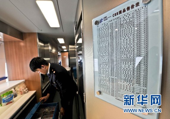 哈大高铁餐车上的食品饮品公开价目表。(新华社记者 王松 摄)