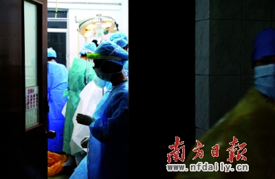 身着防护装备的医护人员正在紧张给“艾滋妈妈”有序地进行剖腹产手术。曾强 摄