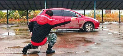 图为网友模仿航母舰载机指挥员的姿势(来源:人民日报海外版)