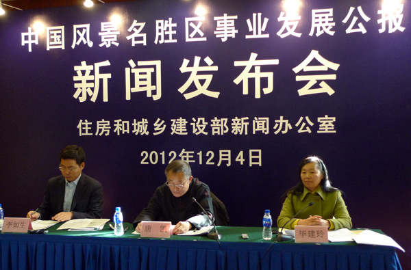 住房和城乡建设部12月4日举行了《中国风景名胜区事业发展公报》新闻发布会。图为发布会现场。新华网 姚润萍 摄