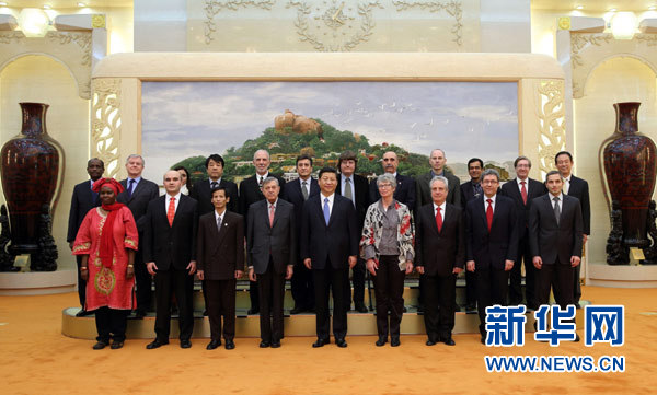 12月5日,中共中央总书记习近平在北京人民大会堂与在华工作的外国专家亲切座谈。这是习近平与外国专家合影。 新华社记者 兰红光 摄