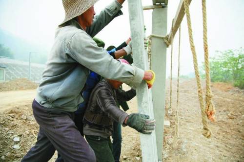 宁杭高铁线上,工人们安装安全防护栏。这是防止人或动物误入高铁线路的重要设施。
