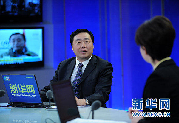 2012年12月10日,陕西省公安厅副厅长陈里做客新华网,与广大网友探讨政务微博如何在与网民互动中贴近民生。图为陈里与主持人交谈。新华网 陈竞超 摄