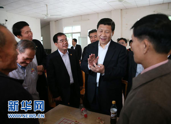 12月7日至11日,中共中央总书记、中央军委主席习近平在广东省考察工作。这是习近平在顺德黄龙村老人活动中心与在此休闲的村民交谈。 新华社记者 兰红光 摄