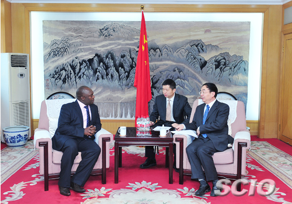 李伍峰副主任会见赞比亚新闻广播部常秘阿莫斯・马鲁朋加一行(郭研 摄影)