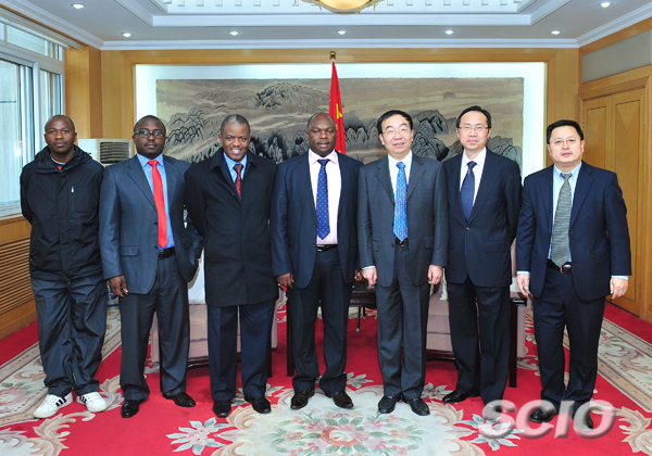 李伍峰副主任与赞比亚新闻广播部常秘阿莫斯・马鲁朋加一行合影(郭研 摄影)