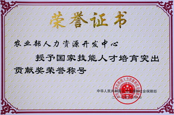 本网讯 近日,人力资源和社会保障部会同中组部、中宣部等9部门在京隆重召开表彰大会,对为国家技能人才培育工作作出突出贡献的单位进行表彰。农业部人力资源开发中心荣获人社部“国家技能人才培育突出贡献奖”,是国务院各部委直属人才机构中唯一获此殊荣的单位。