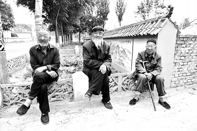 在宁夏隆德县联财镇,几位老人坐在马路边聊天。CFP
