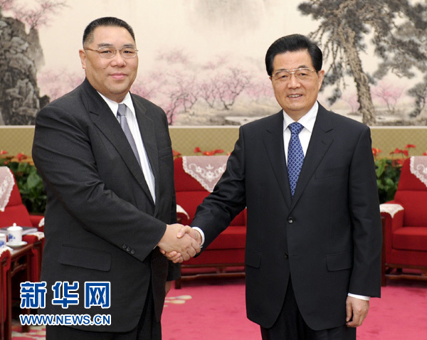 12月21日,国家主席胡锦涛在北京中南海会见来京述职的澳门特别行政区行政长官崔世安。新华社记者 张铎 摄
