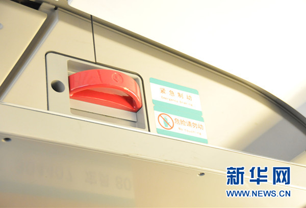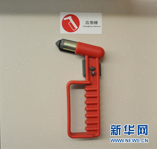 据了解,车厢内配备了各种应急设施。每个车厢都有4个标有红点的窗户,旁边配有安全锤,旅客可在紧急情况下,用安全锤敲碎玻璃逃生。