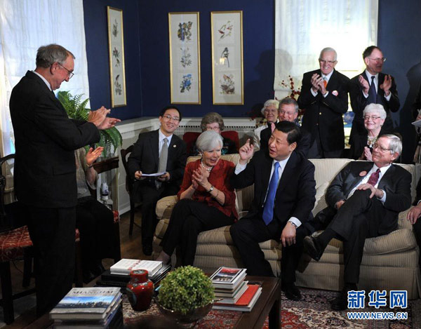 这是2012年2月,习近平访美时到艾奥瓦州老朋友家里与27年前结交的美国老朋友茶叙。 新华社记者刘建生摄
