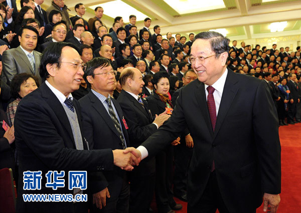 2012年12月6日,俞正声在北京会见中国农工民主党第十五次全国代表大会与会代表。新华社记者 饶爱民 摄