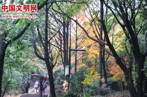 2012年12月18日下午,瑞安万松山的山路上,红枫与盛开的山茶花让人内心明亮,与冰天雪地的北国相比,温州的冬天仿佛才刚入秋。 中国文明网 李雪芹 摄