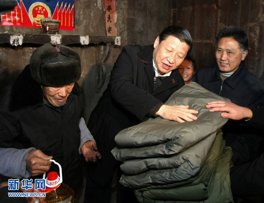 这是2008年1月贵州雨雪冰冻灾害时,习近平到铜仁地区万山特区高楼坪乡老山口村受灾的侗族村民唐召维家看望慰问。新华社记者兰红光摄