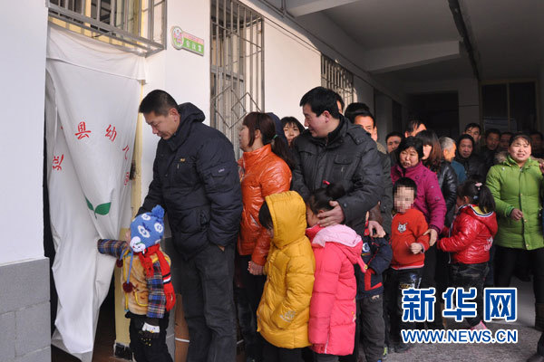 12月22至24日,“为了我们的孩子——贫困家庭先心病儿童救助行动”来到陕西省延安市延长县进行贫困家庭先心病儿童筛查。图为延长县幼儿园孩子在家长陪伴下在诊室外等候检查。新华网记者 李莹 摄