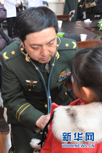 12月22至24日,“为了我们的孩子——贫困家庭先心病儿童救助行动”来到陕西省延安市延长县进行贫困家庭先心病儿童筛查。图为中国武警总医院院长郑静晨对延长县幼儿园孩子进行先心病初步听诊筛查。新华网记者 李莹 摄