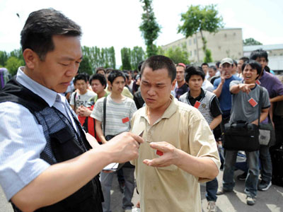 2010年6月14日驻吉尔吉斯斯坦警务联络官在组织撤侨工作。(图片由公安部国际合作局提供)