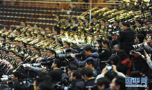 2012年3月2日15时,全国政协十一届五次会议新闻发布会在人民大会堂三楼金色大厅召开,大会新闻发言人赵启正向中外媒体介绍本次大会有关情况,并回答记者提问。