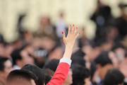记者举手请求提问