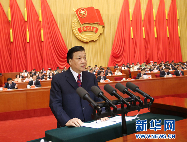 6月17日,中国共产主义青年团第十七次全国代表大会在北京人民大会堂开幕。这是刘云山代表党中央致祝词。 新华社记者刘卫兵摄