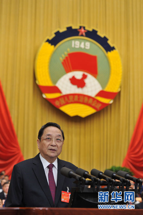 新华网两会快讯:俞正声代表政协第十二届全国委员会常务委员会做工作报告。