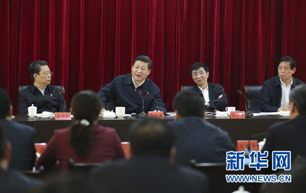 3月18日,习近平听取兰考县教育实践活动情况汇报,并发表重要讲话。新华社记者丁林摄