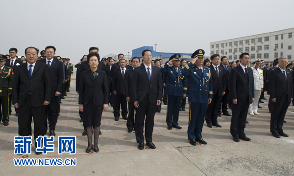3月28日,中共中央政治局常委、国务院副总理张高丽在沈阳桃仙国际机场出席在韩中国人民志愿军烈士遗骸回国迎接仪式并讲话。新华社记者王晔 摄