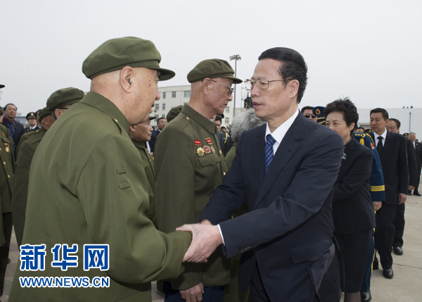 这是张高丽在仪式上同志愿军老战士亲切握手。新华社记者王晔 摄
