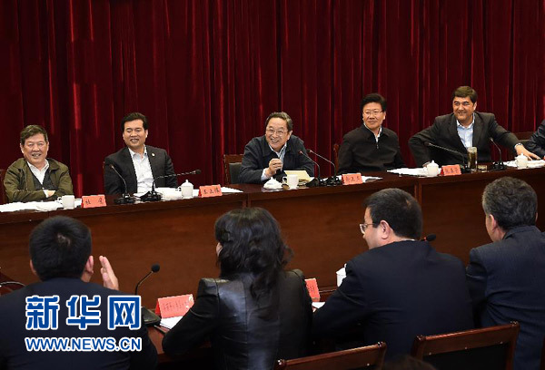 这是3月29日,俞正声在新疆大学与师生座谈。 新华社记者 刘建生 摄
