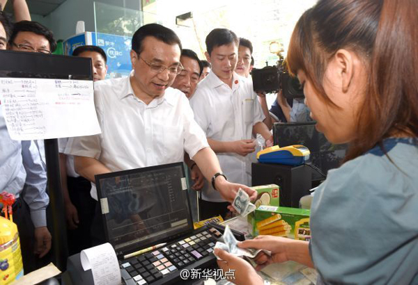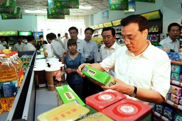 结束海口市工商局考察的李克强总理打破原定行程,径直走进路边一家杂货店,问起店员生意收入情况。看到货架上不少都是海南特产,他赞许产品包装不错。临走前李克强说,耽误你做生意了,来了就消费一下,说着便掏钱买了一罐椰子脆片和一盒蛋卷,共计19元。
