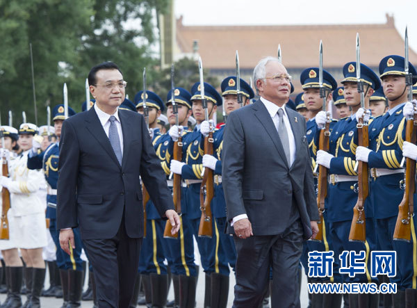 李克强表示,马来西亚是中国的友好邻国和在东盟的重要合作伙伴。建交40年来,两国政府和人民持续推进中马友好合作大业。去年,习近平主席访问马来西亚,取得丰硕成果。今年是中马建交40周年,中方愿与马方以此为契机,增进政治互信,加强战略沟通,拓展和深化务实合作,充实中马全面战略伙伴关系内涵,扩大利益融合,实现共同繁荣。
