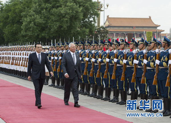 会谈前,李克强在人民大会堂东门外广场为纳吉布举行欢迎仪式。全国政协副主席李海峰出席。