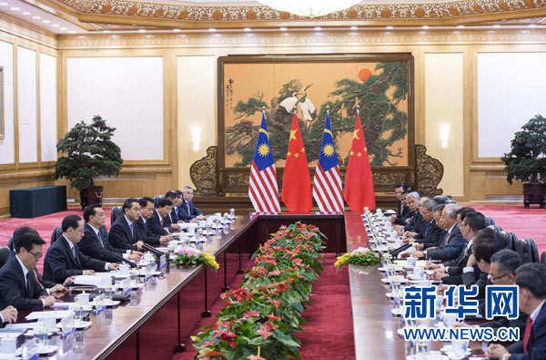 李克强指出,中马合作领域宽广,内容丰富。希望双方发挥好双边经贸磋商机制作用,充分利用中国-东盟自贸区政策优势,拓展经贸合作,力争实现2017年双边贸易额1600亿美元的目标。加强基础设施建设和互联互通领域的合作,共同推进中马钦州产业园区和马中关丹产业园区建设。加强投资、金融合作,继续扩大本币在贸易和投资中的使用,携手推进亚洲基础设施投资银行筹建工作。扩大航天、防务、司法和执法安全、农业合作及人文交流,进一步增进两国人民间的相互了解和友谊,夯实中马关系的民意基础。密切在国际地区事务中的协调配合,共同推进中国-东盟关系和东亚合作,促进地区和平、稳定与发展。