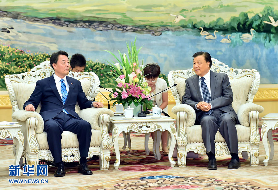 7月16日,中共中央政治局常委、中央书记处书记刘云山在北京人民大会堂会见日本民主党党首、众议员海江田万里。 新华社记者 李涛 摄