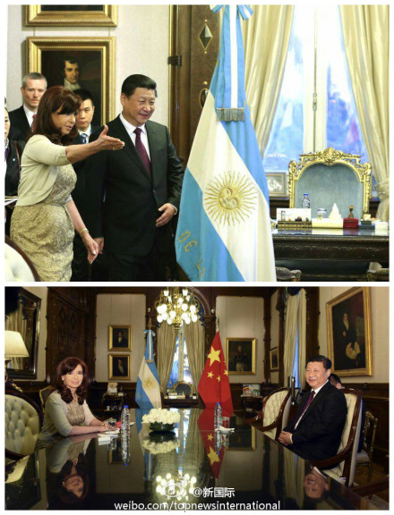新华网北京7月19日电 据新国际微博报道,习近平18日同阿根廷总统克里斯蒂娜会谈时表示,今年是中阿建立战略伙伴关系10周年。中国有句古话,叫作“十年树木”。10年来,中阿战略伙伴关系经历国际风云变幻考验,已成长为结满累累硕果的参天大树,正处于承前启后、继往开来的历史时刻。