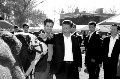 习近平受到农场主莫内塔一家热情迎接。莫内塔向习近平介绍,庄园畜养牲畜近万头,培育了许多优秀种马和肉牛品种。习近平边听边详细询问牲畜养殖和农场经营情况。习近平指出,阿根廷是农牧业大国,农业现代化水平和科技水平很高。中国也是农业大国。中国要发展,必须首先解决好13多亿人口吃饭问题。中国高度重视农业,坚持立足国内、确保粮食自给自足,同时积极利用国际市场,参与国际合作,调剂农副产品。中方愿意同阿方加强农业领域合作,扩大农产品贸易。