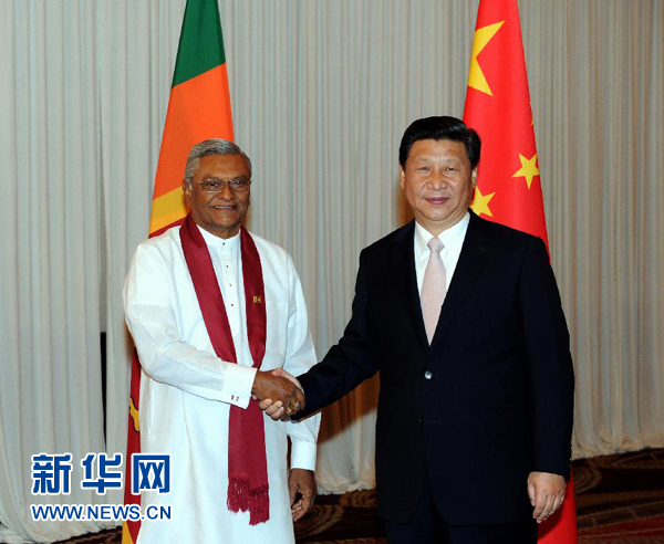 习近平强调,中方视斯里兰卡为全天候的朋友和伙伴,感谢斯方一贯在台湾、涉藏等问题上支持中方立场,支持斯方维护独立、主权、领土完整的努力,将一如既往为斯里兰卡经济社会发展提供力所能及的帮助。新形势下,中方愿同斯方在现有良好基础上,以共同建设21世纪海上丝绸之路为契机,加强互利合作,扩大人文交流,不断为两国关系注入新动力、正能量。希望双方加强立法机构及党际交往,欢迎恰马尔议长及更多斯里兰卡议会成员访华,加深相互了解和友谊。