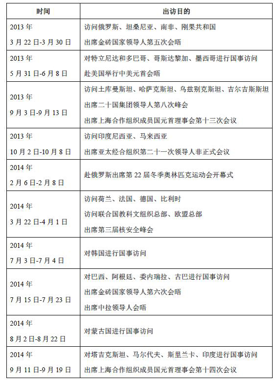 习近平主席出访情况统计(2013年3月-2014年9月)