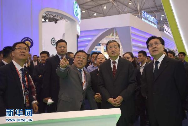 开幕式前,马凯和四川省及有关部门负责同志考察了西博会西部合作馆、国际合作馆部分展台。