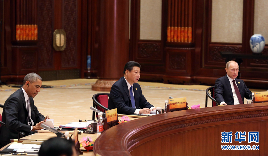 11月11日,亚太经合组织第二十二次领导人非正式会议第一阶段会议开始举行,中国国家主席习近平主持会议并致开幕辞。 新华社记者 庞兴雷摄
