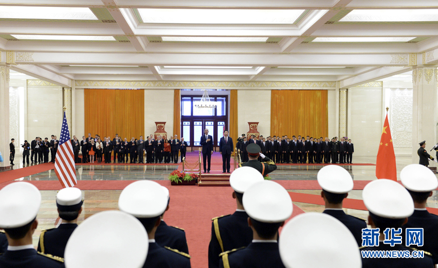 11月12日,国家主席习近平在北京人民大会堂举行欢迎仪式,欢迎美国总统奥巴马对中国进行国事访问。 新华社记者 马占成 摄