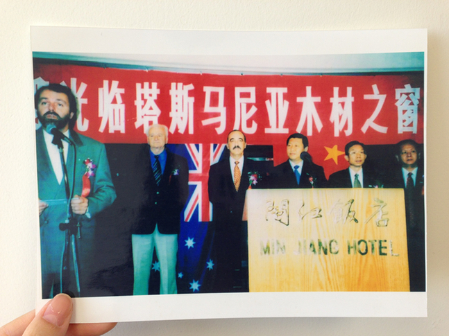 这是1999年习近平任福建省代省长时出席塔斯马尼亚之窗木材交易会时的照片(左三为吉姆·培根州长),记录下当年两位“父母官”为地方经贸合作而出力的一幕。自我表扬一下,记者为寻到这张照片,可是很花了番功夫。