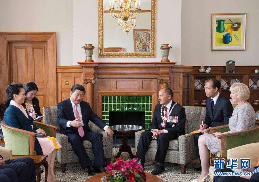 11月20日,中国国家主席习近平在惠灵顿总督府会见新西兰总督迈特帕里。 新华社记者李学仁摄