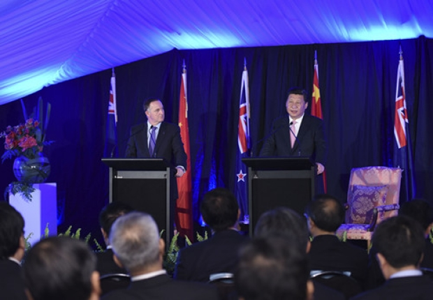 图为习近平主席和新西兰总理约翰·基会谈后共同会见记者(摄影 李学仁)