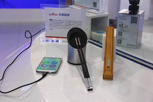 出门随身带一双筷子是时下许多环保达人的习惯,但过不了多久,一种外观简洁漂亮的电子筷子不但能正常使用,伸到食物里,还能检测出用没用“地沟油”。这是百度公司此次展出的产品“筷搜”,它的“油脂快速分析引擎”,能迅速分辨是否使用了有害油脂。此外,它还具备“食材溯源搜索”功能,与手机无线连接,筷子接触到食物的同时,手机里对应的APP就能显示出营养成分、保质期、卡路里等食品信息。它的“钠离子分析装置”还能指导一天的食盐摄入量。相关负责人告诉记者,明年上半年“筷搜”将量产,也许过不了多久大家就能买到它了。如果单买一双筷子,只需要几百块钱。
